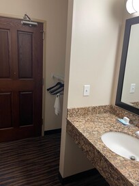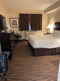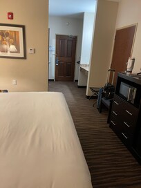 Becky checked me in and gave me great information for our stay in Fort Madison. This hotel has a washer, dryer facility, coffee and cookies in the lobby which are nice small touches. Their accessible bathrooms were very good. The room size is very average, but it has all the amenities like a fridge, microwave, desk, and coffee maker. If I was in the area again, I would definitely stay here.